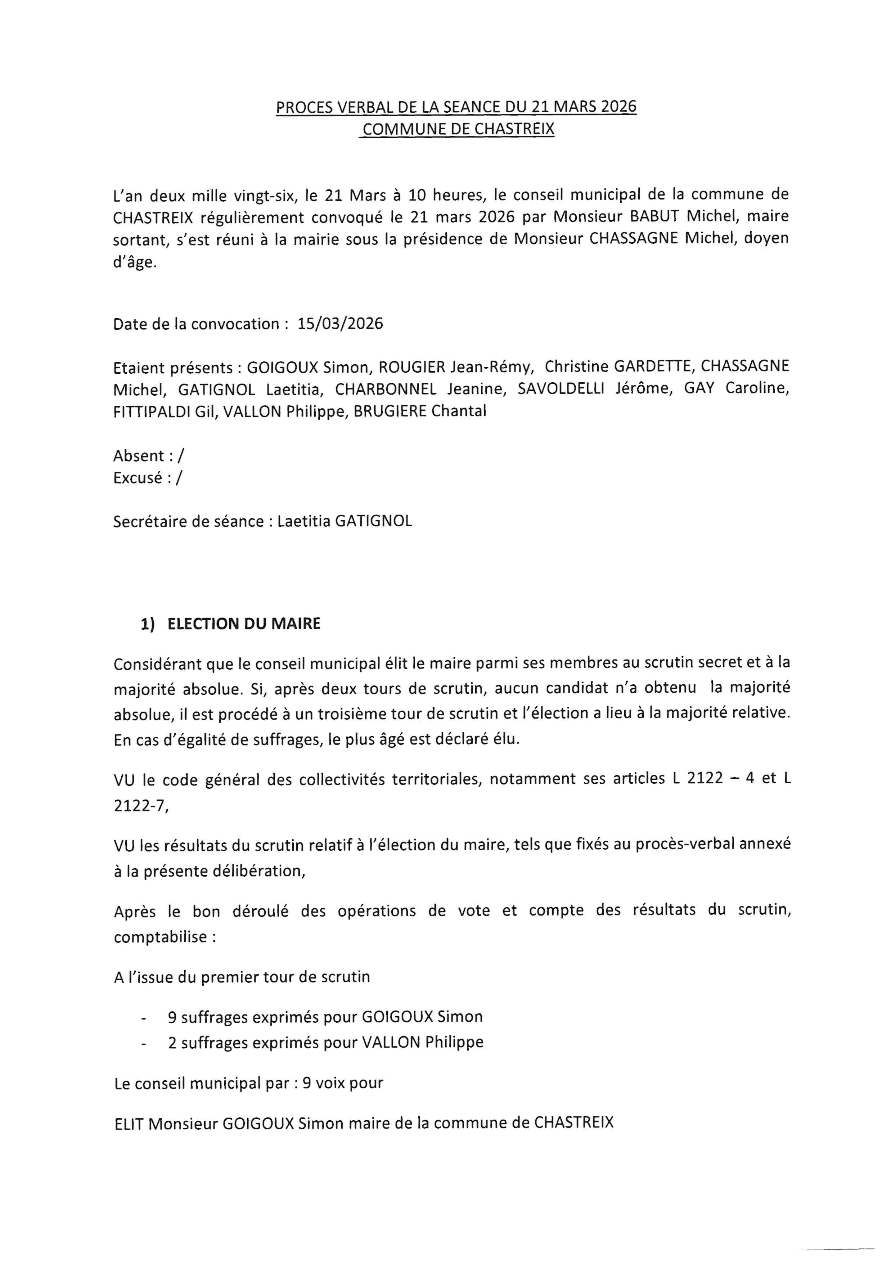 Compte rendu Conseil Municipal samedi 21 /03/ 2026